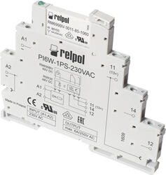 Schnittstellenrelais PIR6W-1PS-230VAC/DC-R (grau), 1 Wechsler. Kontaktmaterial: AgSnO2. Spulenspannung 230 V AC/DC. Nennlast AC1 6 A / 250 V AC. Montage: Montage auf 35-mm-Schiene. Schutzart IP 20.