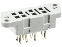 Steckdose, für R2M-Relais, zum Löten. Abmessungen: 40,5 x 14 x 17,6 mm. Hinweis: Zur Sicherung des Sockels im Plattenloch ist eine Rastfeder G2M 1020 erhältlich.